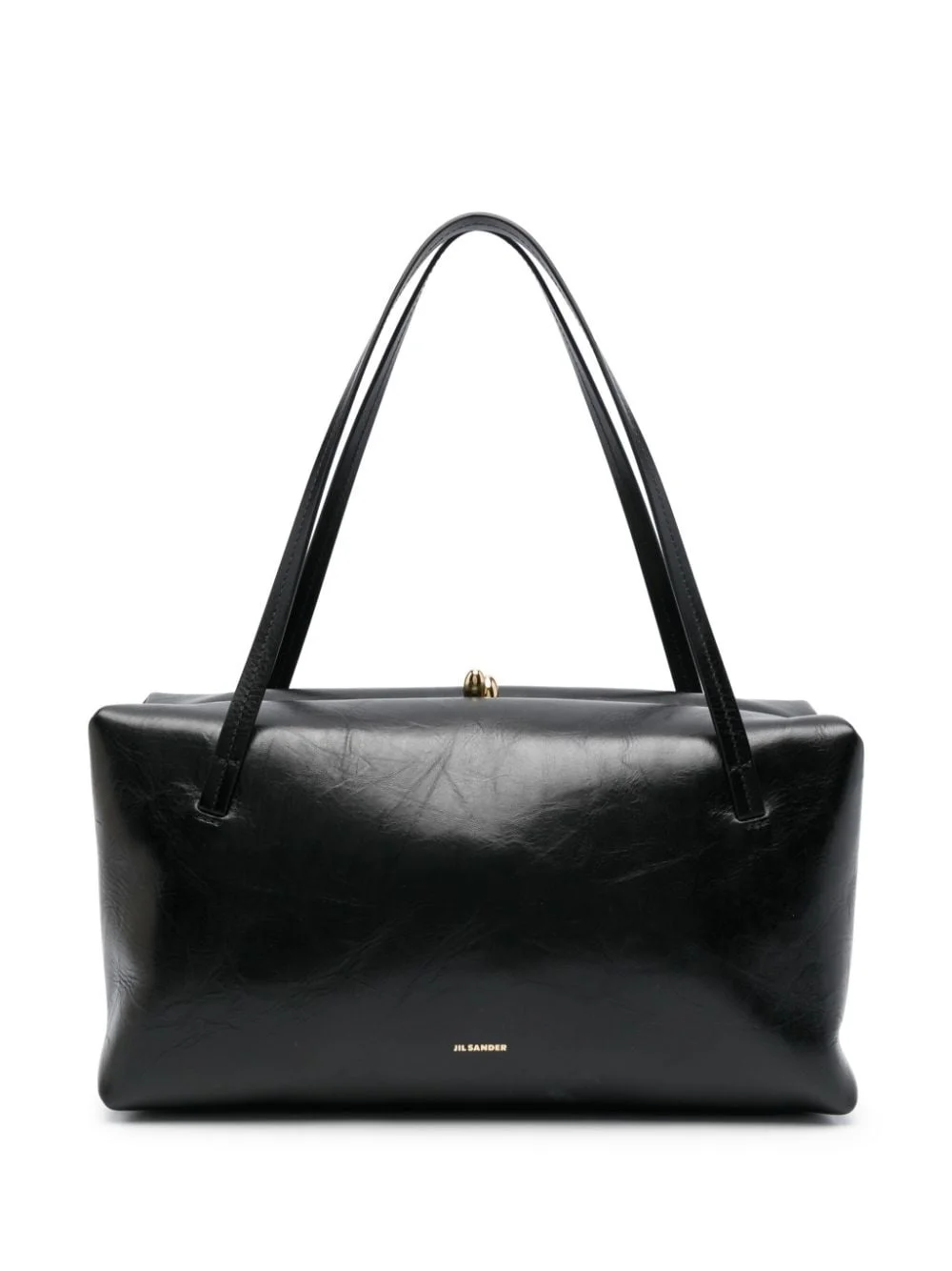 Goji leather shoulder bag The elegant minimalism that Jil Sander is renowned for is on full display with the Goji shoulder bag. It is crafted from smooth black leather and boasts gold-tone kiss-lock fastening complemented by matching logo lettering at the front. Highlights - Black - Lambskin - Cracked effect - Two flat shoulder straps - Embossed logo to the front - Gold-tone hardware - Main compartment - Internal slip pocket - Embossed internal logo - Internal expandable sides - Kiss-lock fastening - This piece comes complete with a protective dust bag. Made in Italy Composition Outer: Sheepskin 100% Lining: Lambskin 100% SIZE & FIT Model measurements Height 5 ft 9 in(1.76 m) Bust/Chest 31.88 in(81 cm) Hips 35.43 in(90 cm) Waist 24.8 in(63 cm) Measurement DEPTH 4.33 in(11 cm) HANDLE 10.23 in(26 cm) HEIGHT 6.69 in(17 cm) WIDTH 12.59 in(32 cm)