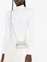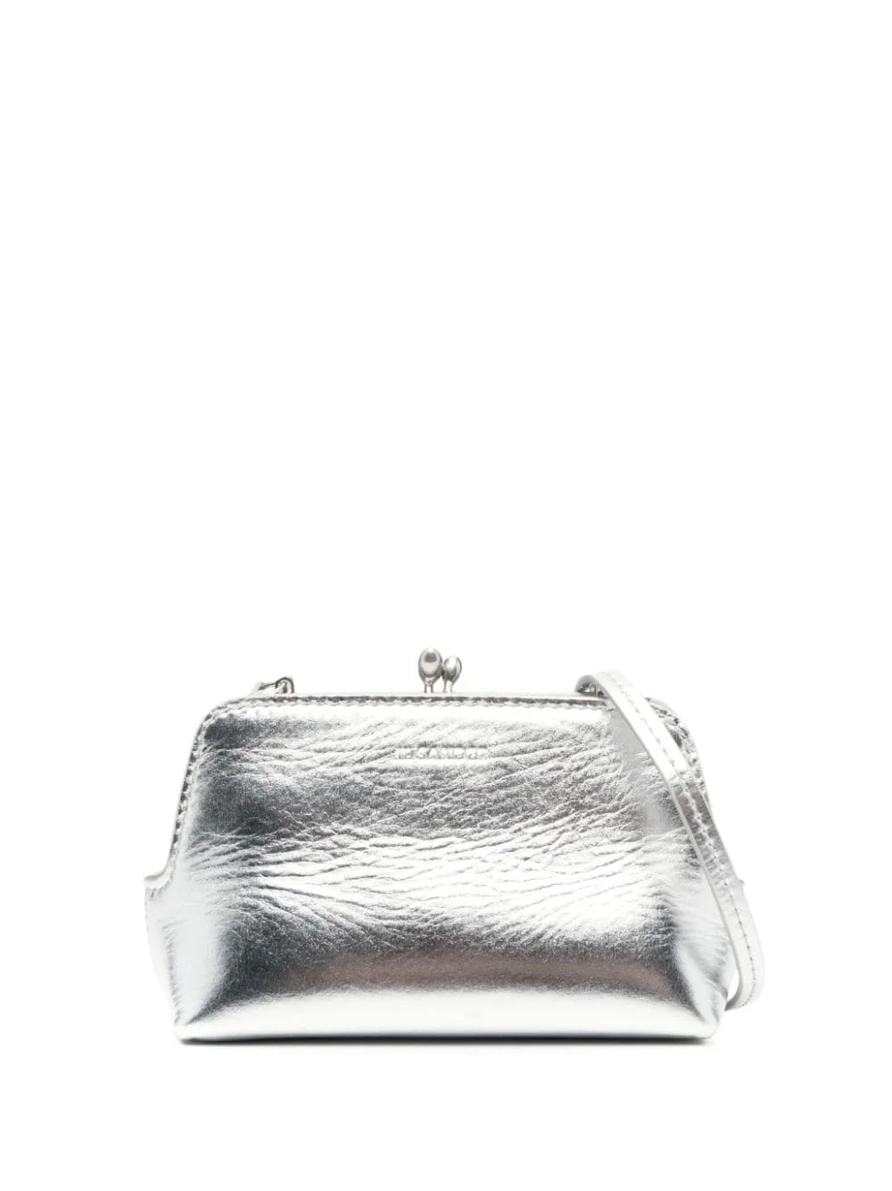 Goji Micro metallic leather bag Named for its berry-shaped clasp, Jil Sander’s Goji Micro bag is crafted in supple metallic silver leather with a metal frame to maintain its structure. The detachable matching strap allows it to be carried in-hand or over the shoulder. Highlights - Silver-tone - Calf leather - Metallic finish - Silver-tone hardware - Logo stamp to the front - Snap-lock closure - Adjustable detachable shoulder strap - Main compartment Made in Italy Composition Outer: Calf Leather 100% SIZE & FIT Model measurements Height 5 ft 10 in(1.79 m) Bust/Chest 31.1 in(79 cm) Hips 35.03 in(89 cm) Waist 24.01 in(61 cm) Measurement DEPTH 1.96 in(5 cm) HEIGHT 3.54 in(9 cm) STRAP 22.04 in(56 cm) WIDTH 5.11 in(13 cm)
