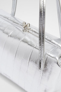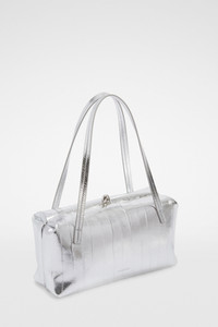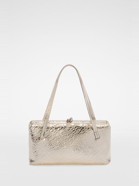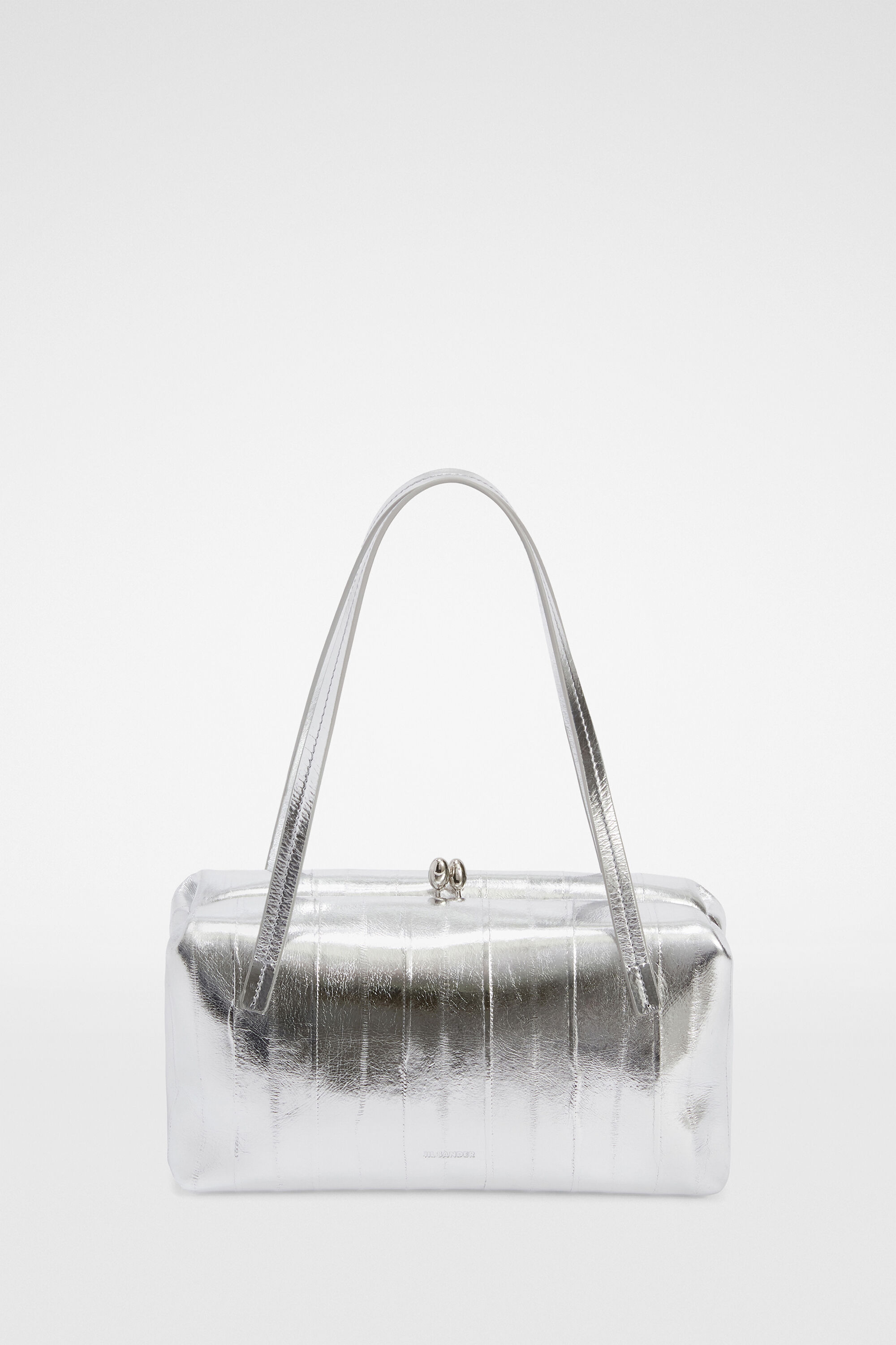 Small-sized metallic leather shoulder bag with metal frame and embossed Jil Sander logo Details - leather top handles - rectangular and soft shape - clutch closure - inner card slot - sleek metal frame detail - nappa lining - embossed Jil Sander logo - expandable side insert - 100% hagfish, handles 100% calf leather - made in Italy - StyleID: J08WD0078P8694040