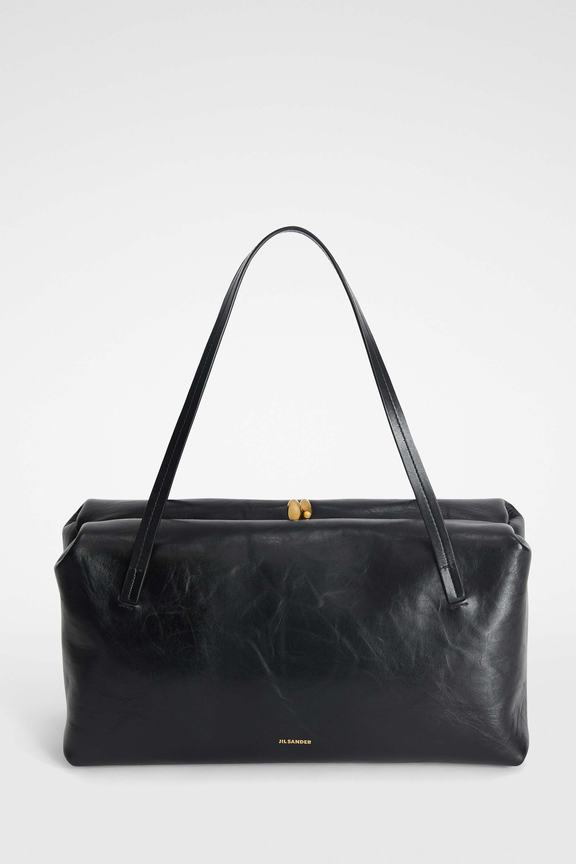 Medium-sized leather shoulder bag with metal frame and embossed Jil Sander logo Details - leather top handles - rectangular and soft shape - sleek metal frame with clutch closure - inner card slot - nappa lining - embossed Jil Sander logo - expandable side insert - 100% calf leather - made in Italy - StyleID: J08WD0065P5636001
