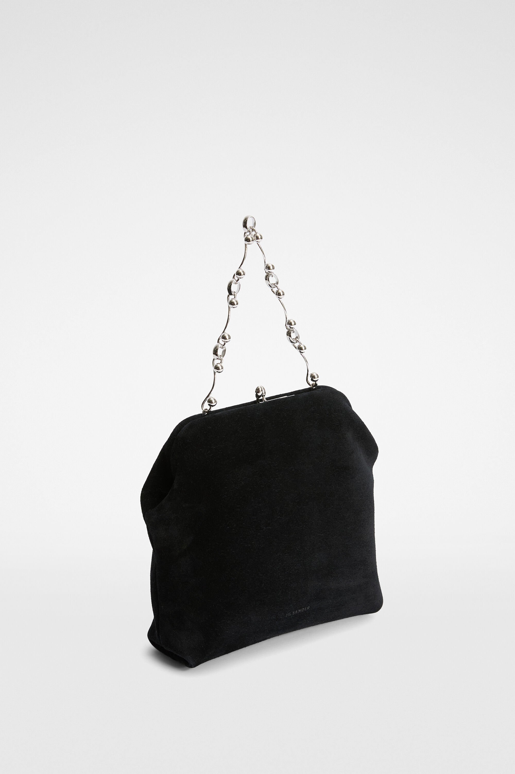 Small-sized suede handbag with metal frame, chain handle and embossed Jil Sander logo Details - metal chain handle - soft shape with clutch closure - inner flat leather pocket with blind embossed Jil Sander logo - sleek metal frame detail - nappa lining - embossed Jil Sander logo - 100% calf leather - made in Italy - StyleID: J08ZI0007P7075001