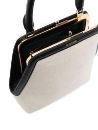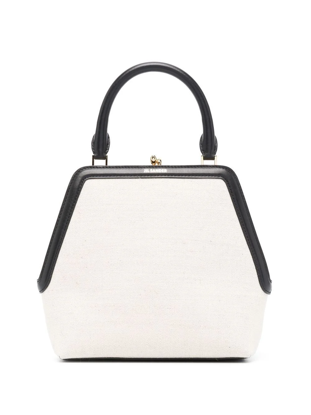 Goji Square small tote bag Jil Sander's affinity for elevated simplicity is captured in the clean lines of this small tote bag. Characterised by its structured shape and sleek metal frame, it's stamped with a logo in gold-tone foil. Made in Italy Composition Outer: Calf Leather 100%, Fabric 100% SIZE & FIT Model measurements Height 5 ft 11 in(1.8 m) Bust/Chest 31.49 in(80 cm) Hips 36.22 in(92 cm) Waist 25.59 in(65 cm) Measurement DEPTH 3.54 in(9 cm) HANDLE 3.93 in(10 cm) HEIGHT 7.08 in(18 cm) WIDTH 9.05 in(23 cm)