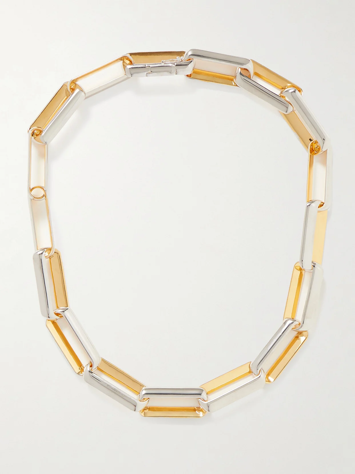 Jil Sander's necklace is made from silver- and gold-tone metal that really highlights the chunky, elongated links. Wear yours solo for the biggest impact.