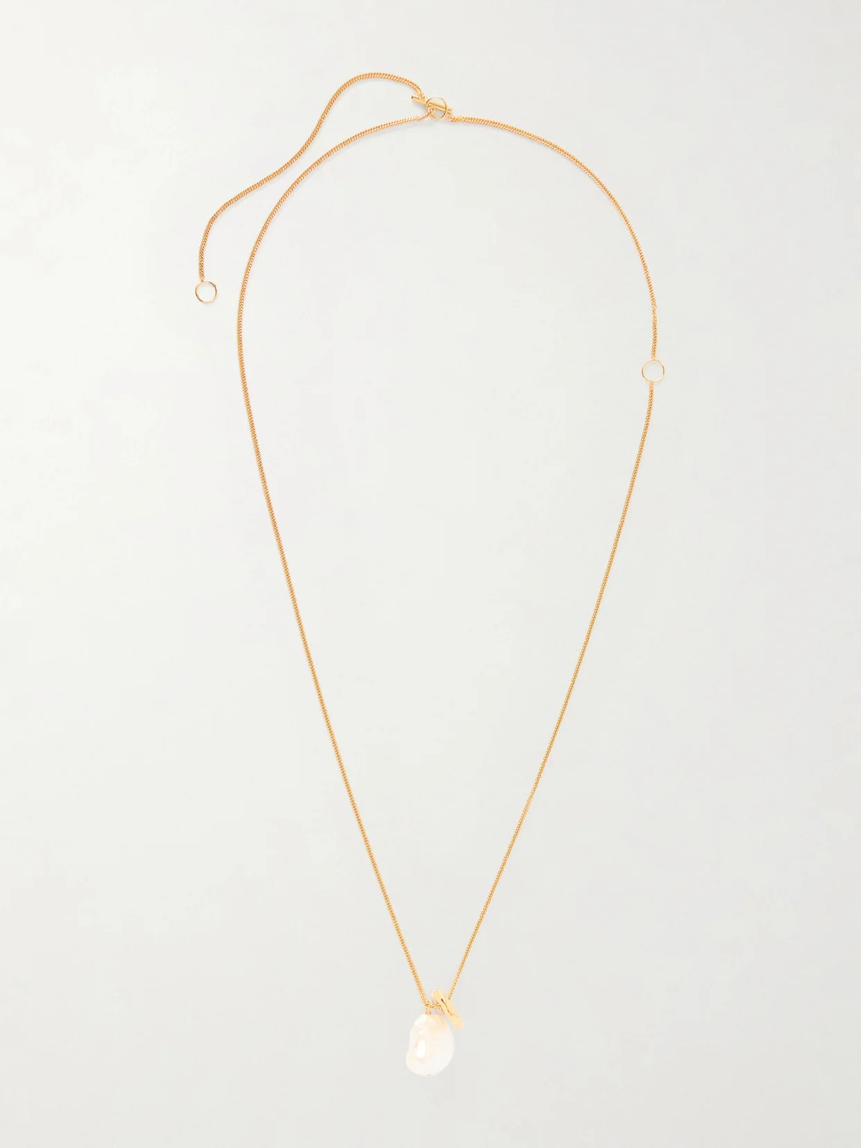 Jil Sander's necklace is strung with a wavy ring that complements the organic shape of the natural pearl. It's made from gold-tone brass and can be worn at three different lengths.