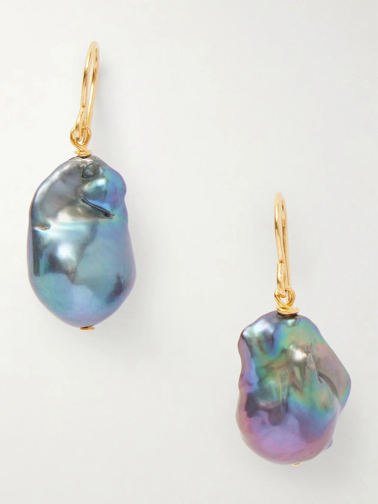 Jil Sander's 'Grainy' earrings are strung with freshwater baroque pearls that have a lustrous, iridescent finish. Handmade in Italy, they're suspended from gold-tone hooks and have a sizable profile that looks best worn solo.