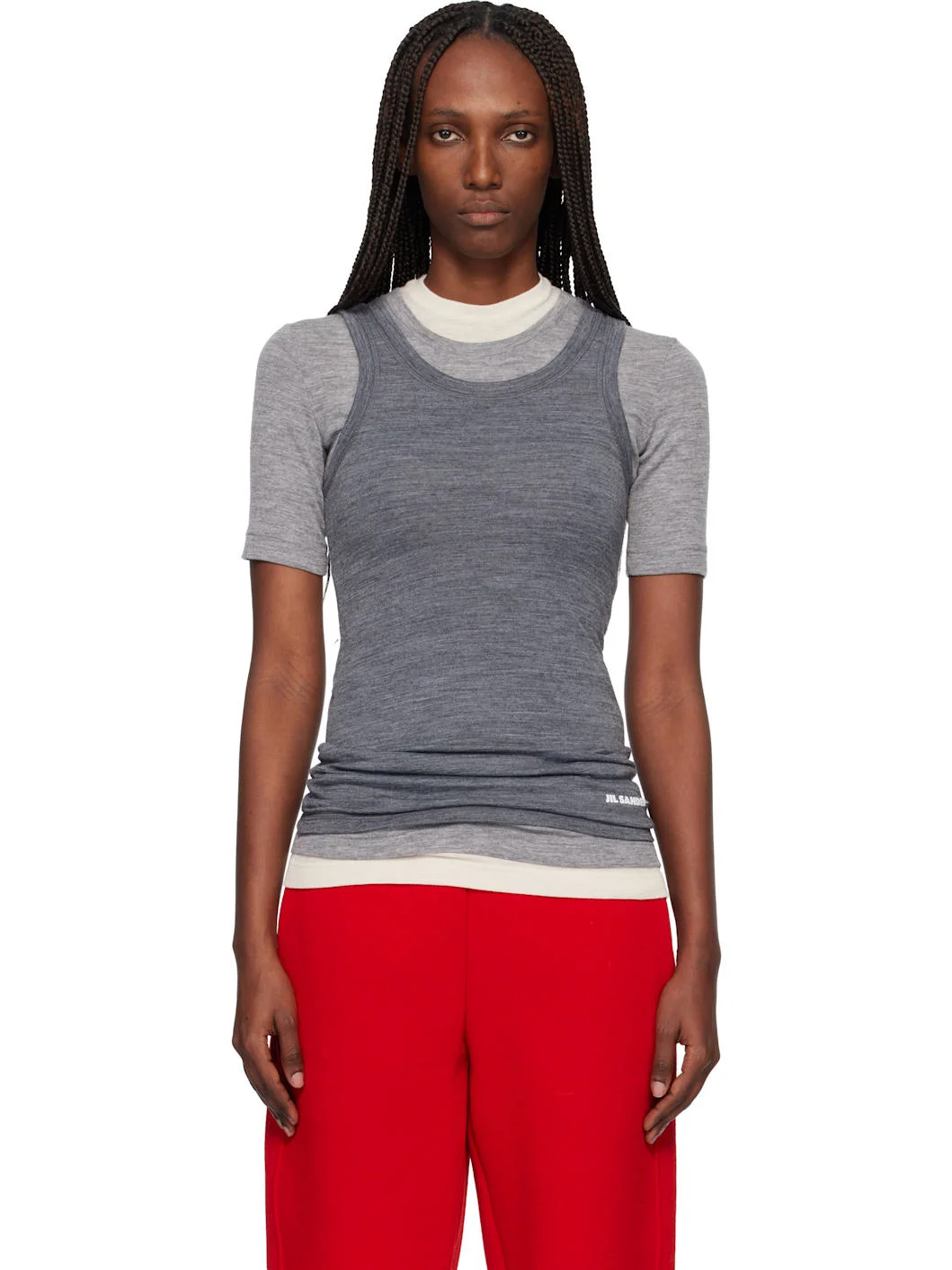 Virgin wool-blend jersey tank top. · Lightweight · Scoop neck · Logo bonded at front Part of the Jill Sander+ collection. Supplier color: Celadon green 55% polyester, 45% virgin wool. Made in Italy 252249F111001