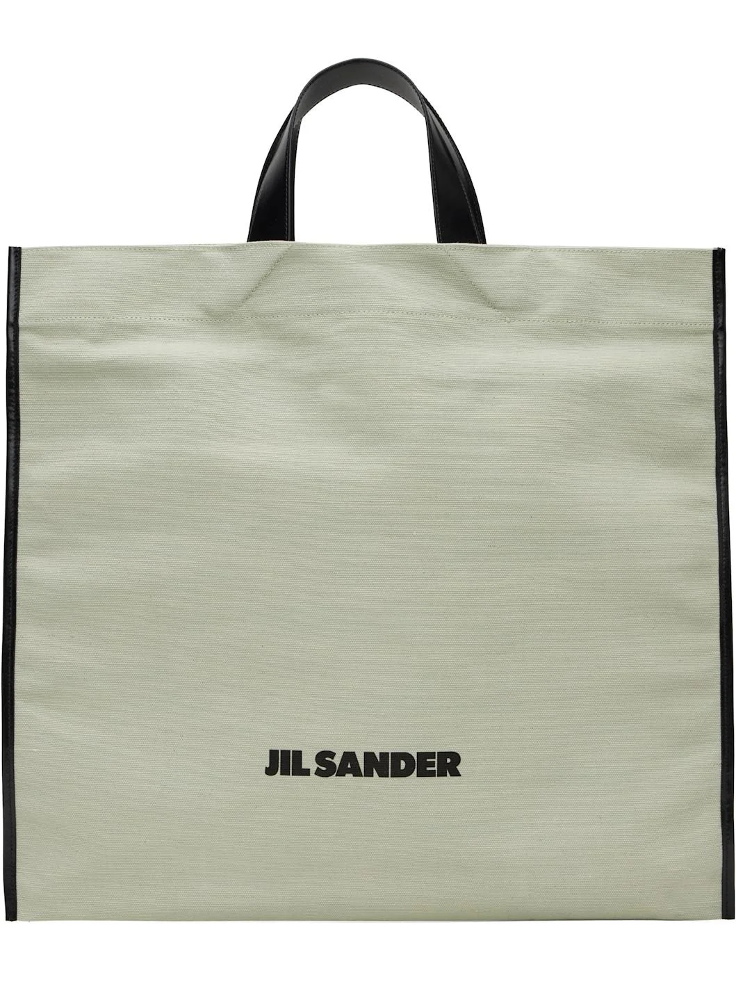 Cotton canvas tote in green. · Buffed calfskin trim throughout · Twin carry handles · Logo printed at face · Patch pockets at interior · H17.75" x W19.5" Supplier color: China blue Textile, calfskin. Made in Italy 251249F049000