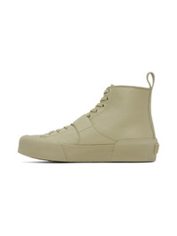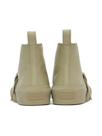 High-top grained nappa leather sneakers in green. · Rubber cap toe · Lace-up closure · Pin-buckle strap at vamp · Pull-loop at heel collar · Logo patch at padded calfskin footbed · Grained calfskin lining · Rubberized logo patch at heel counter · Textured rubber sole Supplier color: Grasshopper Upper: leather. Sole: rubber. Made in Spain 231249F127005