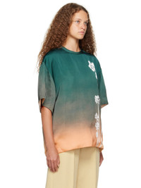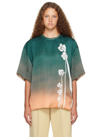 Viscose satin T-shirt. Gradient effect printed throughout. · Crewneck · Graphic printed at front · Zip fastening at shoulder · Full viscose twill lining Supplier color: Sunrise