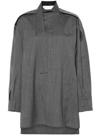 wool blouse Highlights - Dark grey - Wool - Textured finish - Concealed press-stud fastening - Stand-up collar - Attached scarf - Long sleeves - Press-stud fastening cuffs - Side slits - Box-pleat detail - Straight hem Made in Italy Composition Wool 100% SIZE & FIT Model measurements Height 5 ft 10 in(1.77 m) Bust/Chest 29.92 in(76 cm) Hips 34.25 in(87 cm) Waist 23.62 in(60 cm) FittingInformation Designed for an oversized fit, offering additional room throughout Made from a midweight non-stretch fabric This piece fits true to size – take your usual size
