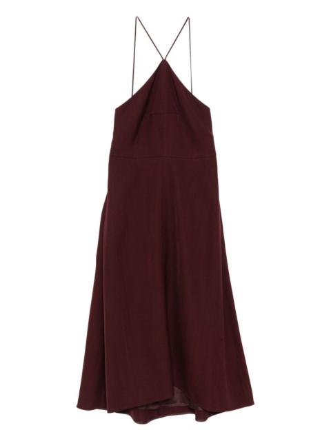 halter-neck dress Highlights - Black - Rear zip fastening - Straight hem Made in Italy Composition Outer: Viscose 58%, Silk 42% Lining: Viscose 95%, Elastane 5% SIZE & FIT Model measurements Height 5 ft 10 in(1.78 m) Bust/Chest 31.88 in(81 cm) Hips 37 in(94 cm) Waist 25.19 in(64 cm) FittingInformation Designed for a close fit at the chest and waist with a loose fit at the hip The adjustable shoulder straps allow for a preferred fit when worn Made from a midweight non-stretch fabric This piece fits large – take one size down Washing instructions Dry Clean Only