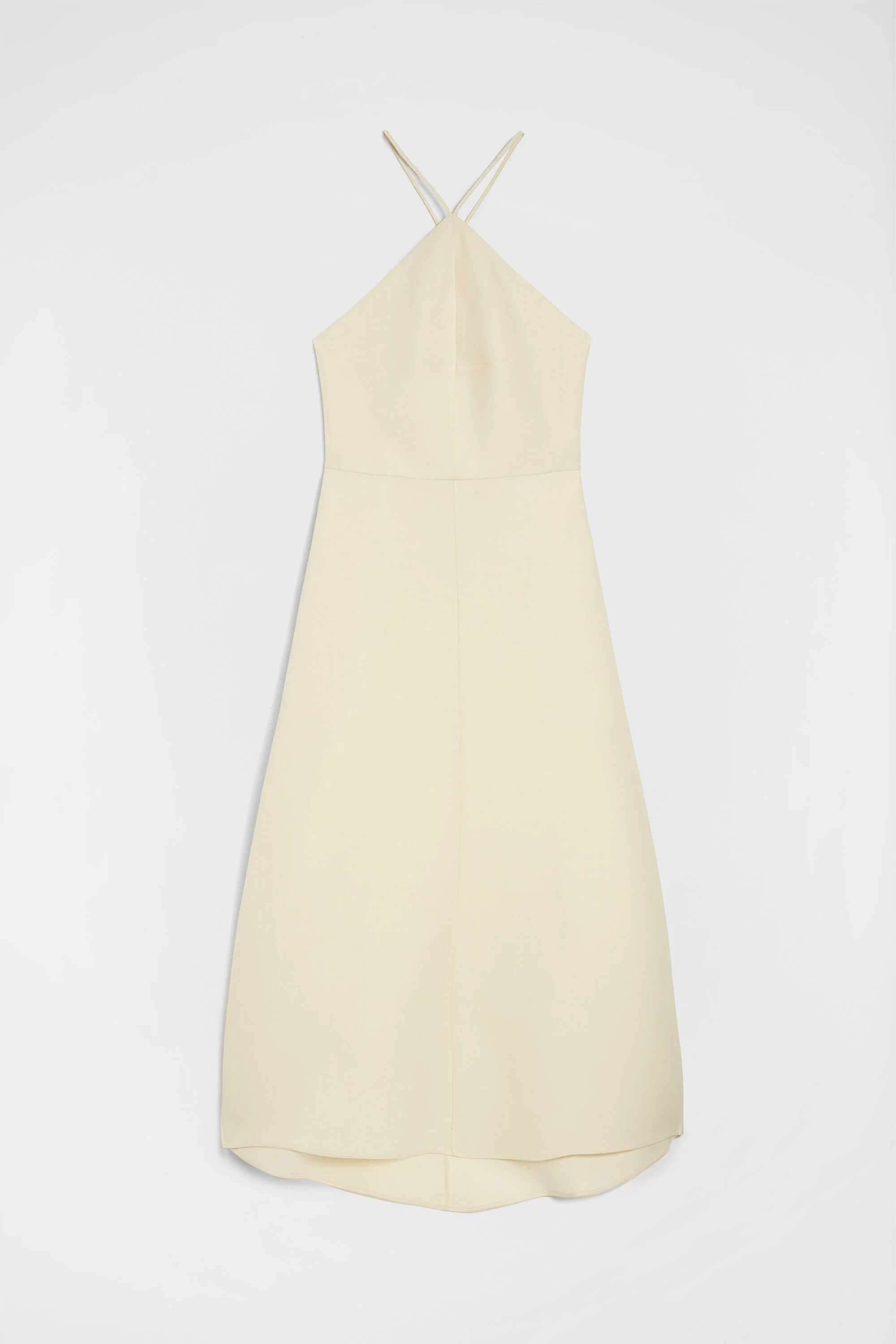 Sleeveless lightweight wool and silk blend dress with cross over back Details - fitted bodice - calf-length flared skirt - centre-back zip closure - side-seam pockets - halter neck - adjustable thin straps - viscose lining - lightweight wool and silk tailoring - 63% silk 37% virgin wool - made in Italy - StyleID: J01CT0258J55076740 Care - dry clean only - iron with care Fit - model is 177cm/5'9" and is wearing a size 34 DE - Please note that the physical label of the item will show the German size
