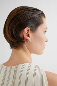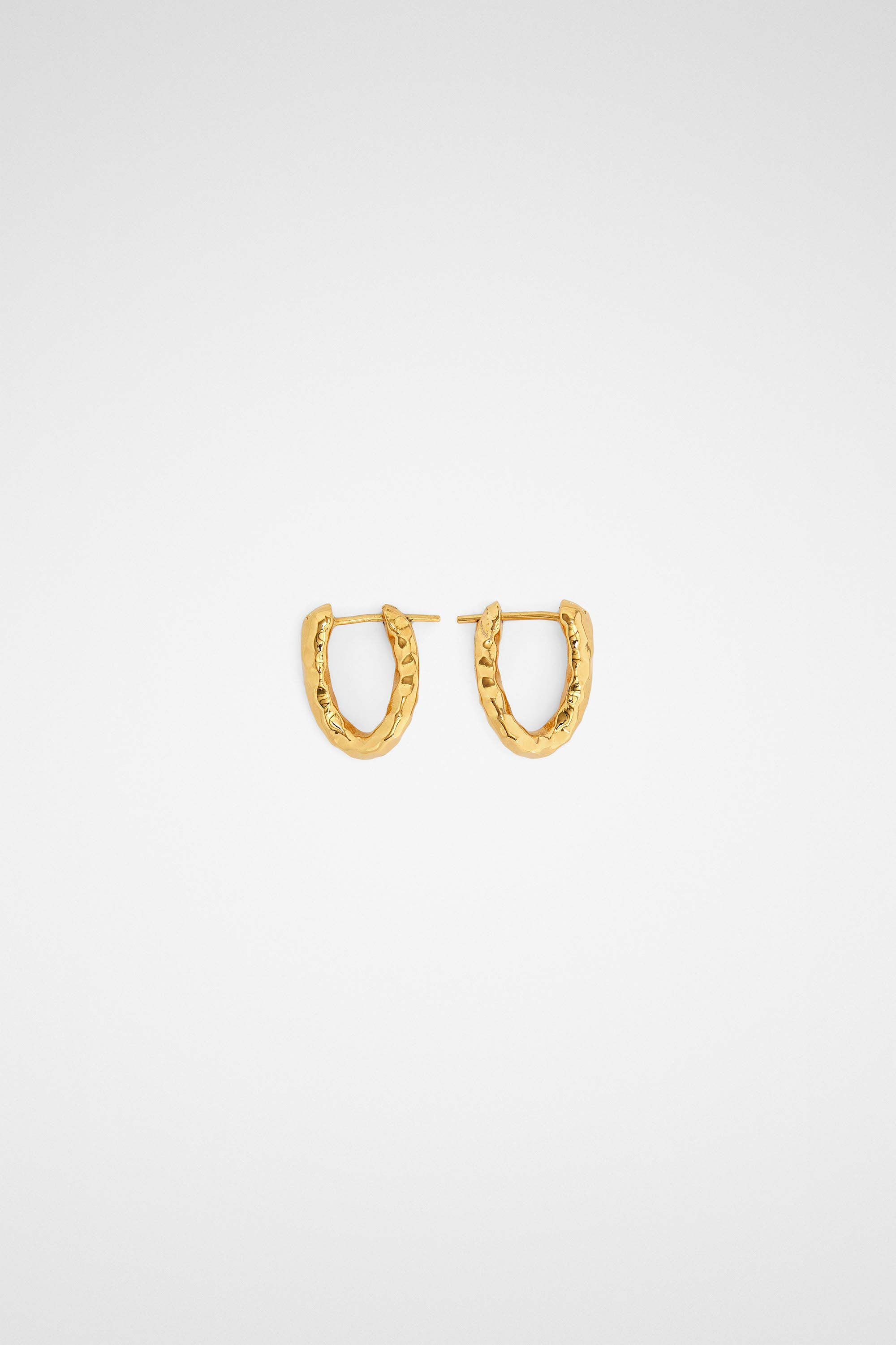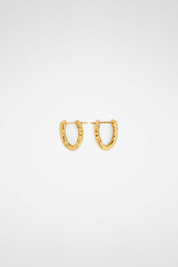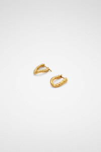 Handcrafted small brass hoop earrings with hand-hammered undulating surface Details - gold-toned - snap post closure - engraved Jil Sander logo - nickel tested - antioxidant treatment - 100% brass - made in Italy - StyleID: 8058191167073