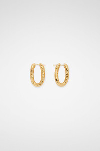 Handcrafted medium brass hoop earrings with hand-hammered undulating surface Details - gold-toned - snap post closure - engraved Jil Sander logo - nickel tested - antioxidant treatment - 100% brass - made in Italy - StyleID: 8058191167059