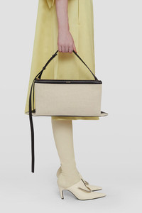 Medium-sized canvas handbag with embossed Jil Sander logo Details - leather handles - inner leather pocket - squared shape - embossed Jil Sander logo - 70% cotton 30% linen - w 34 cm x h 24 cm x d 10 cm - made in Italy - StyleID: 8056993761666