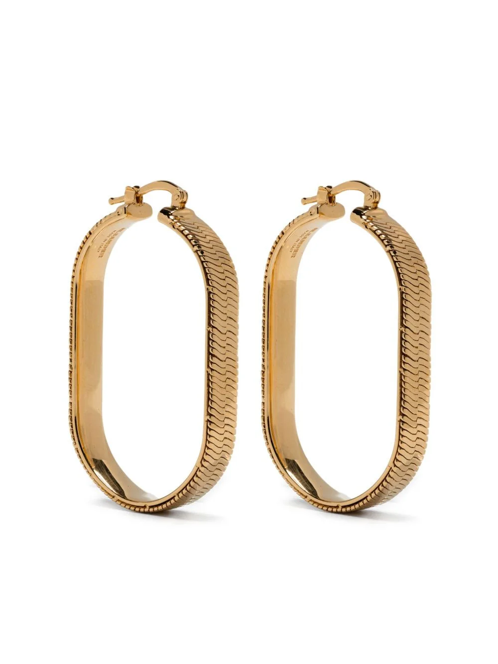 herringbone-textured oval earrings Highlights - Gold-tone - Oval shape - Herringbone texture - Hook fastening - These earrings come as a pair. Made in Italy SIZE & FIT Model measurements Height 5 ft 9 in(1.75 m) Bust/Chest 34.64 in(88 cm) Hips 36.61 in(93 cm) Waist 26.37 in(67 cm) Measurement HEIGHT 1.65 in(4.2 cm) Weight (single earring) 8 g(8 g) WIDTH 0.23 in(0.6 cm)