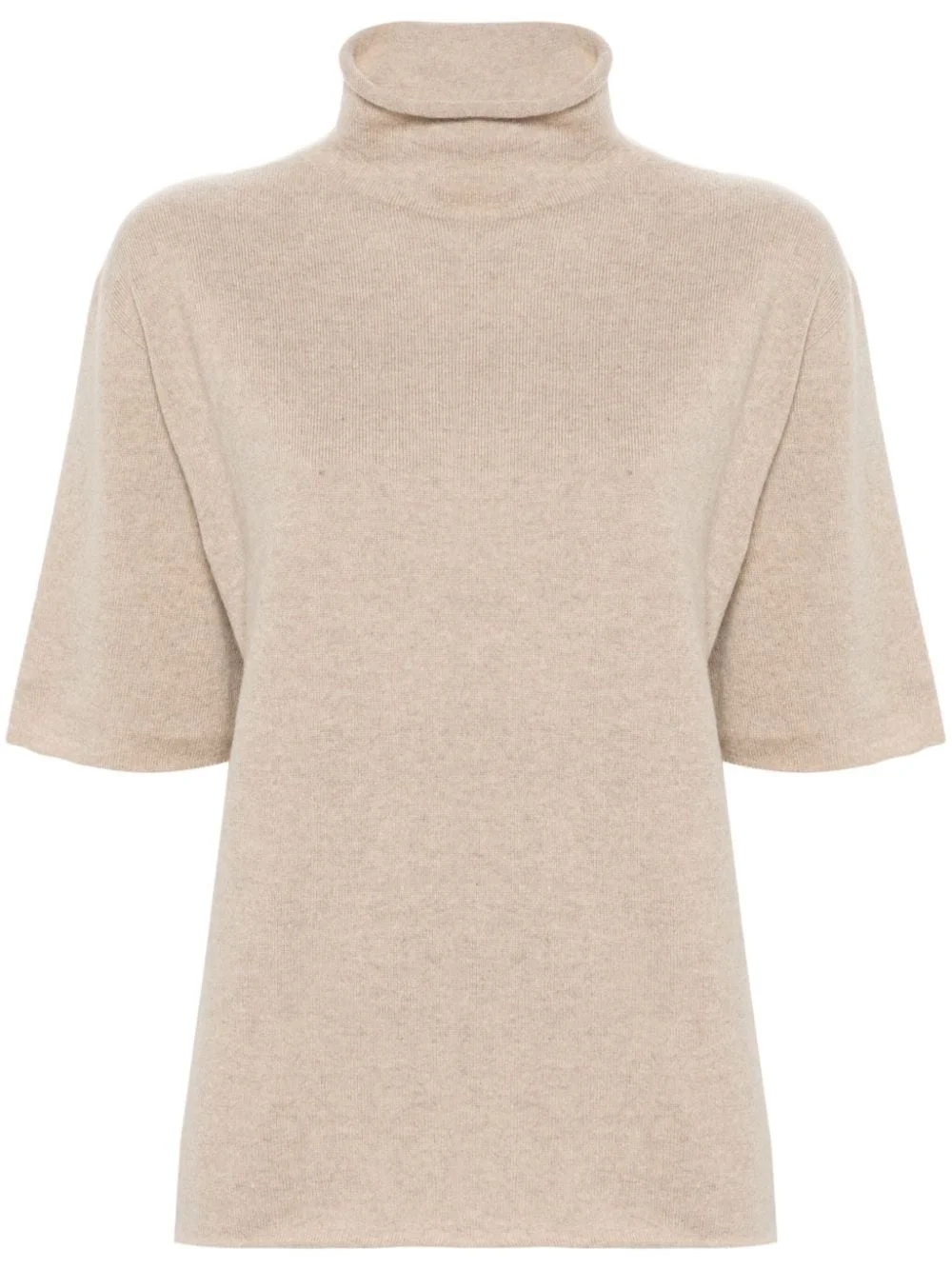 high-neck sweater Highlights - Beige - Cashmere - Knitted construction - Melange effect - High neck - Short sleeves - Straight hem - Unlined Made in Italy Composition Cashmere 100% SIZE & FIT Model measurements Height 5 ft 10 in(1.77 m) Bust/Chest 33.85 in(86 cm) Hips 37 in(94 cm) Waist 26.37 in(67 cm) FittingInformation Designed for a relaxed fit, this piece allows for comfort and movement when worn Made with a midweight knit, this piece offers some stretch This piece fits true to size – take your usual size