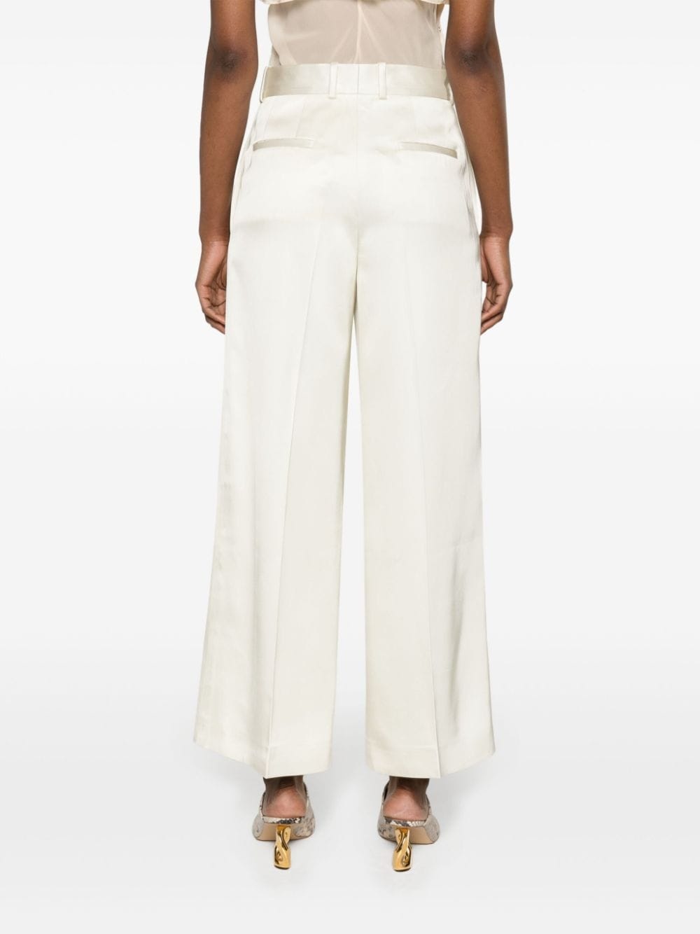 high-rise twill palazzo trousers Highlights - Ecru - Twill weave - High-rise - Concealed fly and button fastening - Belt loops - Pressed crease - Two side inset pockets - Two rear jetted pockets - Wide leg Made in Italy Composition Lining: Cotton 100% Outer: Viscose 83%, Silk 17% SIZE & FIT Model measurements Height 5 ft 11 in(1.8 m) Bust/Chest 33.46 in(85 cm) Hips 37 in(94 cm) Waist 24.01 in(61 cm) FittingInformation Designed with a wide-leg cut, these trousers allow for a close fit at the waist and offer a loose and roomy fit over the leg Made from a midweight non-stretch fabric This piece fits true to size – take your usual size