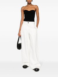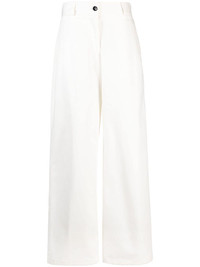 high-waist wide-leg trousers Highlights - Optical white - Cotton - Concealed fly and button fastening - Belt loops - Two side inset pockets - High-waisted - Wide leg - Straight hem Made in Italy Composition Lining: Cotton 100% Outer: Cotton 100% SIZE & FIT Model measurements Height 5 ft 11 in(1.8 m) Bust/Chest 31.88 in(81 cm) Hips 35.03 in(89 cm) Waist 24.01 in(61 cm) FittingInformation Designed with a wide-leg cut, these trousers allow for a close fit at the waist and offer a loose and roomy fit over the leg Made from a midweight non-stretch fabric This piece fits true to size – take your usual size Washing instructions Dry Clean Only