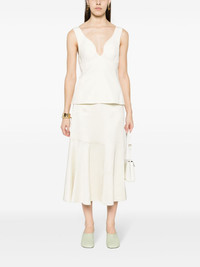 high-waisted panelled midi skirt Highlights - Ivory white - Panelled design - Twill weave - High-waisted - Two side slash pockets - Rear dart detailing - Rear side slit - Straight hem - Concealed rear zip fastening Made in Italy Composition Outer: Viscose 83%, Silk 17% Lining: Viscose 100% SIZE & FIT Model measurements Height 5 ft 11 in(1.8 m) Bust/Chest 31.49 in(80 cm) Hips 36.22 in(92 cm) Waist 25.59 in(65 cm) FittingInformation This midi-length skirt is intended to be worn high on the waist Made from a midweight non-stretch fabric This piece fits true to size – take your usual size Washing instructions Dry Clean Only