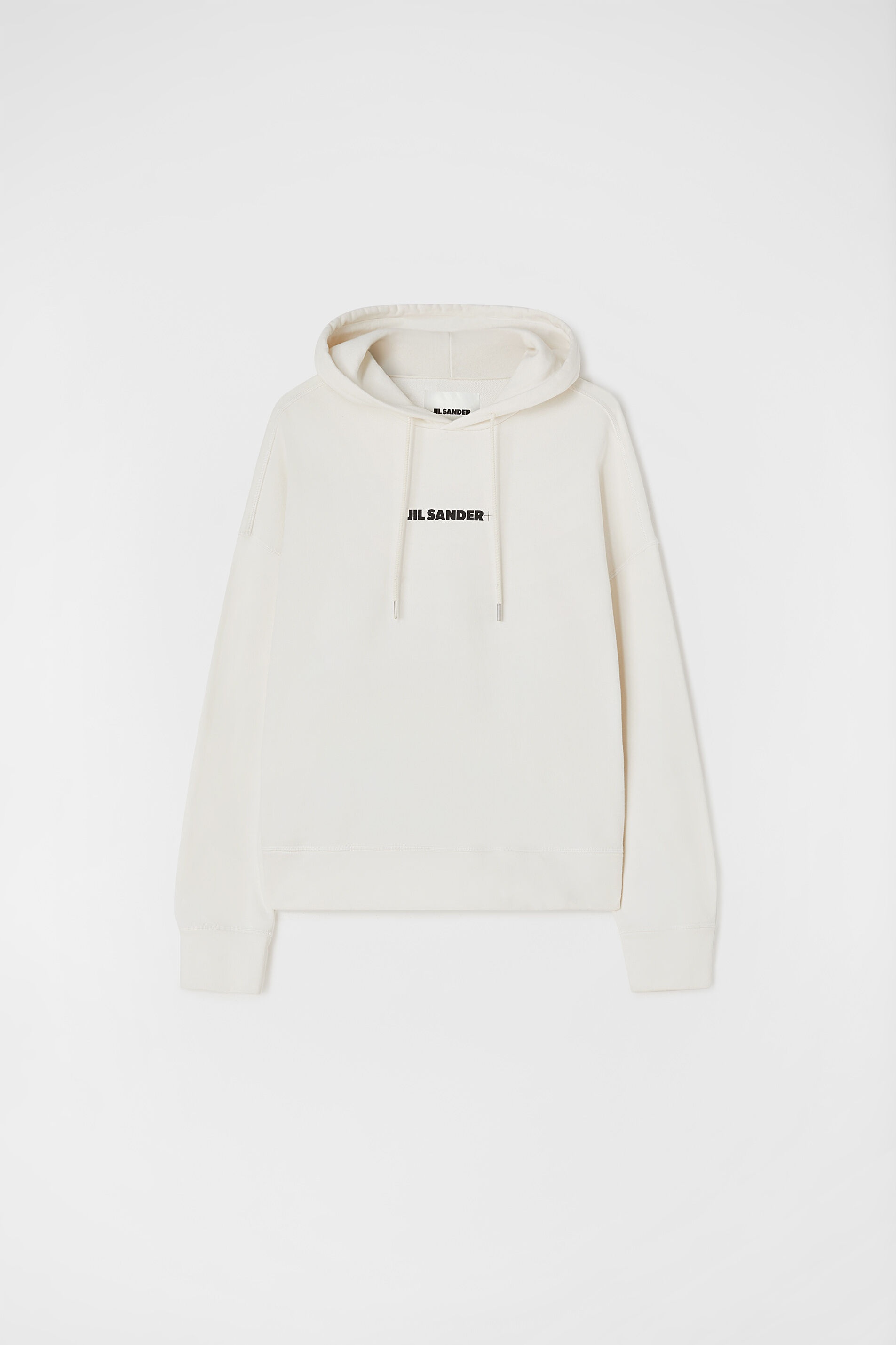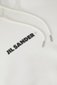 Long-sleeved organic cotton sweatshirt with Jil Sander+ printed logo Details - oversized fit and boxy shape - crew neck - hood with drawstring fastening - Jil Sander+ printed logo - french terry cotton - 100% cotton - made in Italy - style ID: J40GU0002-J45050 Care - hand wash - iron with care Size and measurements - International sizing - model is 177cm/5'9" and is wearing a size S