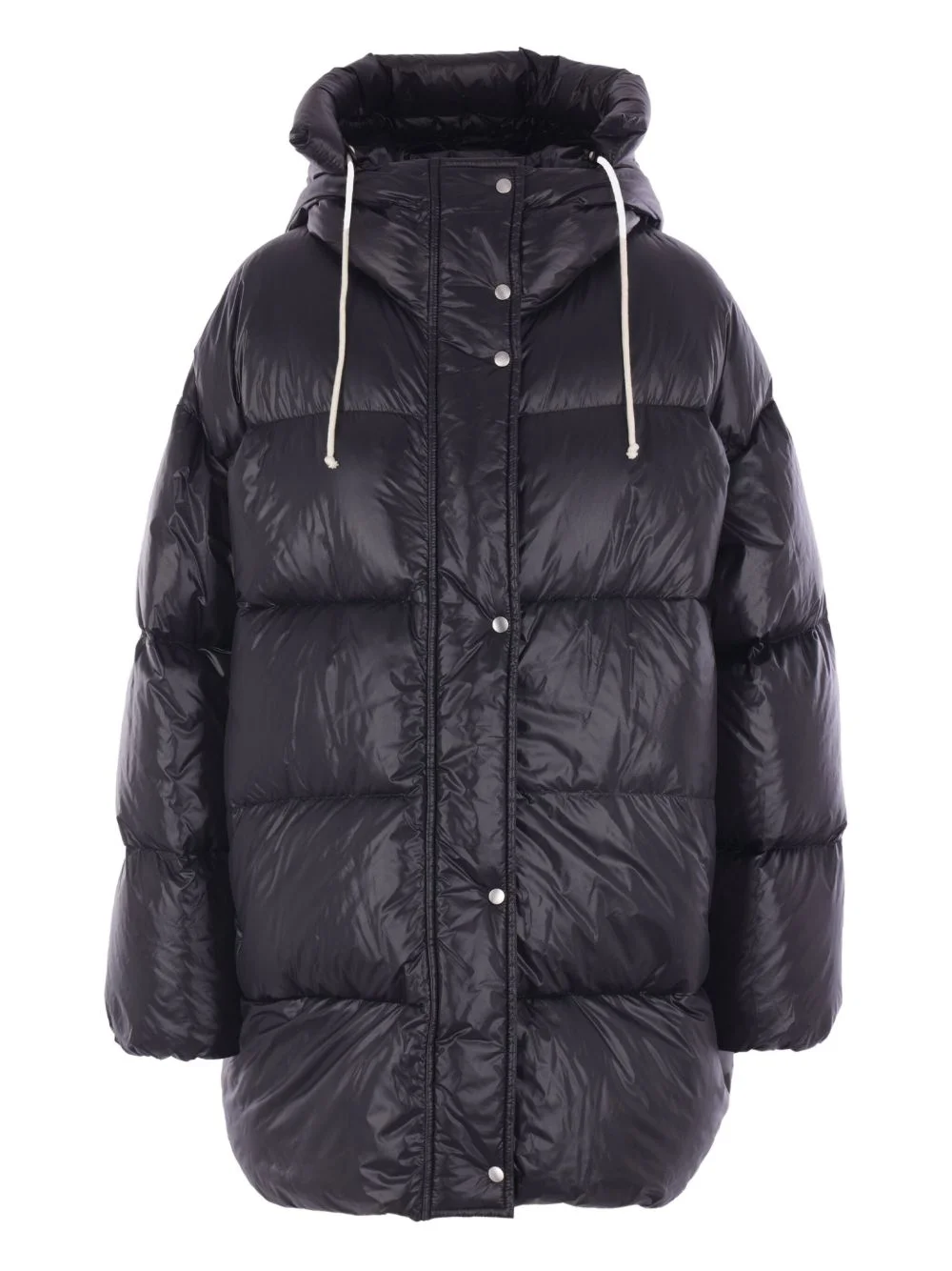 hooded padded jacket Highlights - Black - Padded design - Button fastening - Drawstring hood - Long sleeves Imported Composition Polyamide 100% Washing instructions Read Manufacturer Guidelines