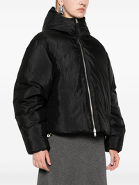 hooded puffer jacket Highlights - Black - Goose down - Padded design - High neck - Classic hood - Drop shoulder - Long sleeves - Elasticated cuffs - Two side slit pockets - Drawstring hem - Internal slip pocket - Full lining - Front zip fastening Made in Italy Composition Lining: Goose Down 85%, Polyamide 64%, Silk 26%, Goose Feather 15% Outer: Polyamide 64%, Silk 36% SIZE & FIT Model measurements Height 5 ft 9 in(1.75 m) Bust/Chest 31.88 in(81 cm) Hips 34.64 in(88 cm) Waist 24.01 in(61 cm) FittingInformation Designed to be unstructured, offering a loose fit throughout The internal drawstring at the hem allows for fitted preferences Made from a padded non-stretch fabric, giving it no natural elasticity This piece fits true to size – take your usual size