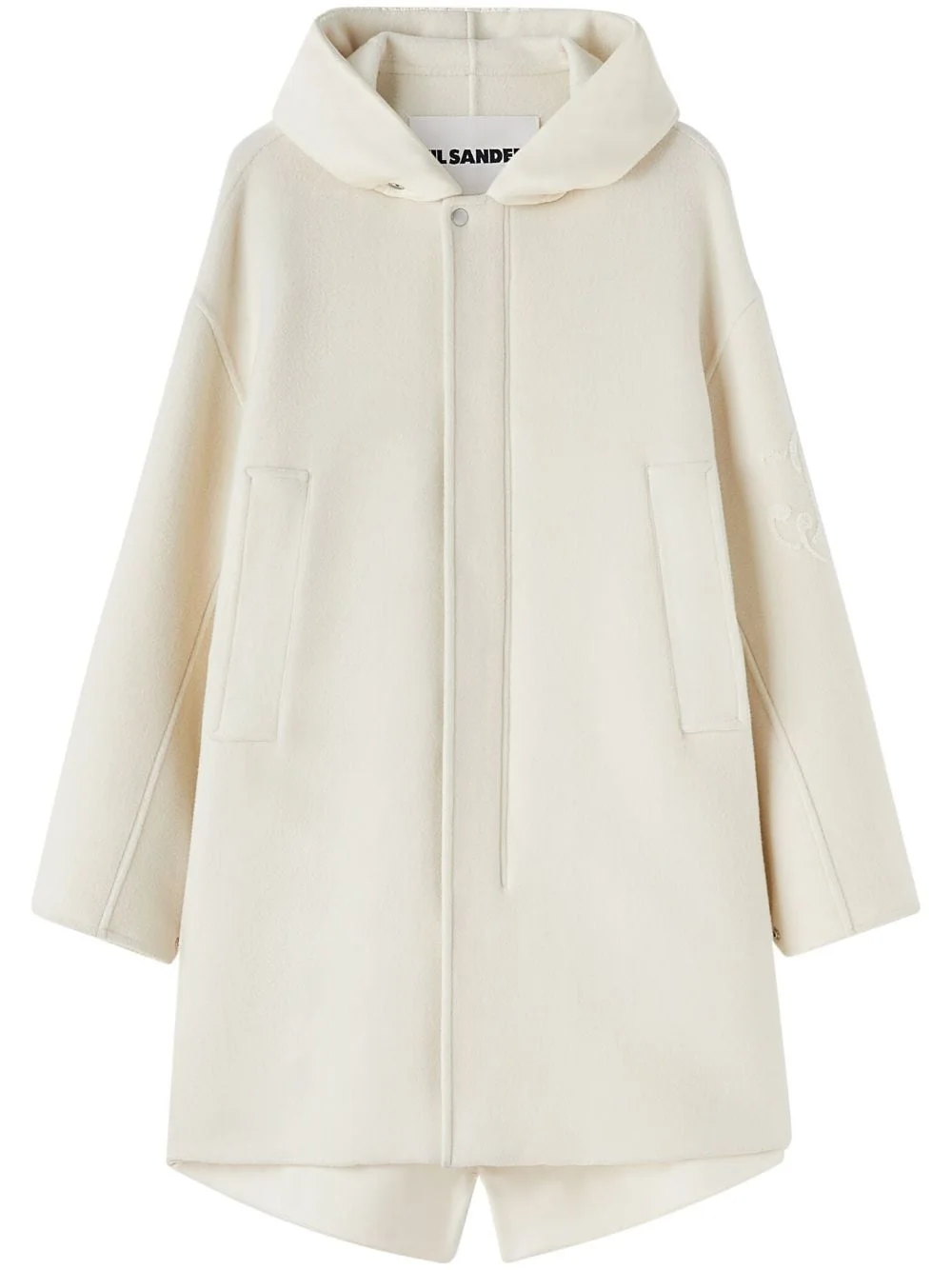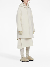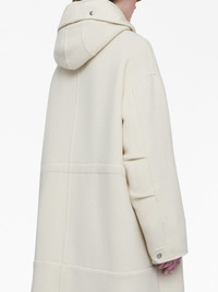 hooded virgin wool parka Highlights - Off-white - Virgin wool - Front press-stud and zip fastening - Long sleeves - Press-stud fastening cuffs - Classic hood - Two side welt pockets - High-low hem Made in Italy Composition Lining: Viscose 100% Outer: Virgin Wool 100%