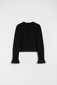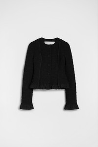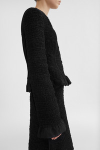 Long-sleeved smocked lightweight polyester taffetas jacket with draped cuffs and hem Details - slim fit - crew-neck - centre-front button closure - external 3D seams - draped cuffs and hem - smocked lightweight polyester taffetas - 100% polyester - made in Italy - StyleID: J02BN0211J70193001 Care - dry clean only - iron with care Fit - model is 177cm/5'9" and is wearing a size 34 DE - Please note that the physical label of the item will show the German size