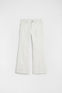 Japanese denim trousers with back leather patch with embossed Jil Sander logo Details - relaxed fit - regular crotch and waist - flared cropped leg - zip fly and button closure - five pockets - back leather patch with embossed Jil Sander logo - 100% cotton - made in Japan - StyleID: J04KA0120J45288102 Care - hand wash - iron with care Fit - model is 177cm/5'9" and is wearing a denim size 27 - Please note that the physical label of the item will show the Denim sizing