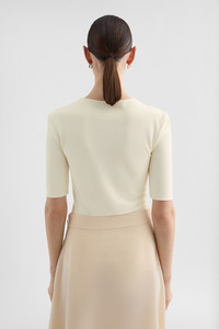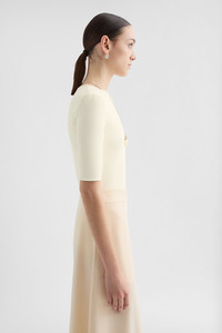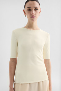 Short-sleeved viscose crepe t-shirt Details - fitted shape - crew neck - fluid viscose crepe - 82% viscose-rayon 18% polyamide-nylon - made in Italy - StyleID: J04NC0002J65016105 Care - dry clean only - iron with care Fit - model is 177cm/5'9" and is wearing a size 34 DE - Please note that the physical label of the item will show the German size