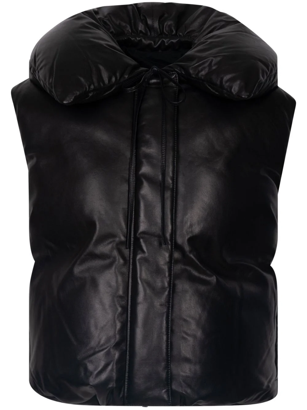 leather padded gilet Highlights - Black - Sheepskin - Smooth grain - Padded design - Concealed front fastening - Oversized pointed collar - Sleeveless - Straight hem Made in Italy Composition Sheepskin 100%