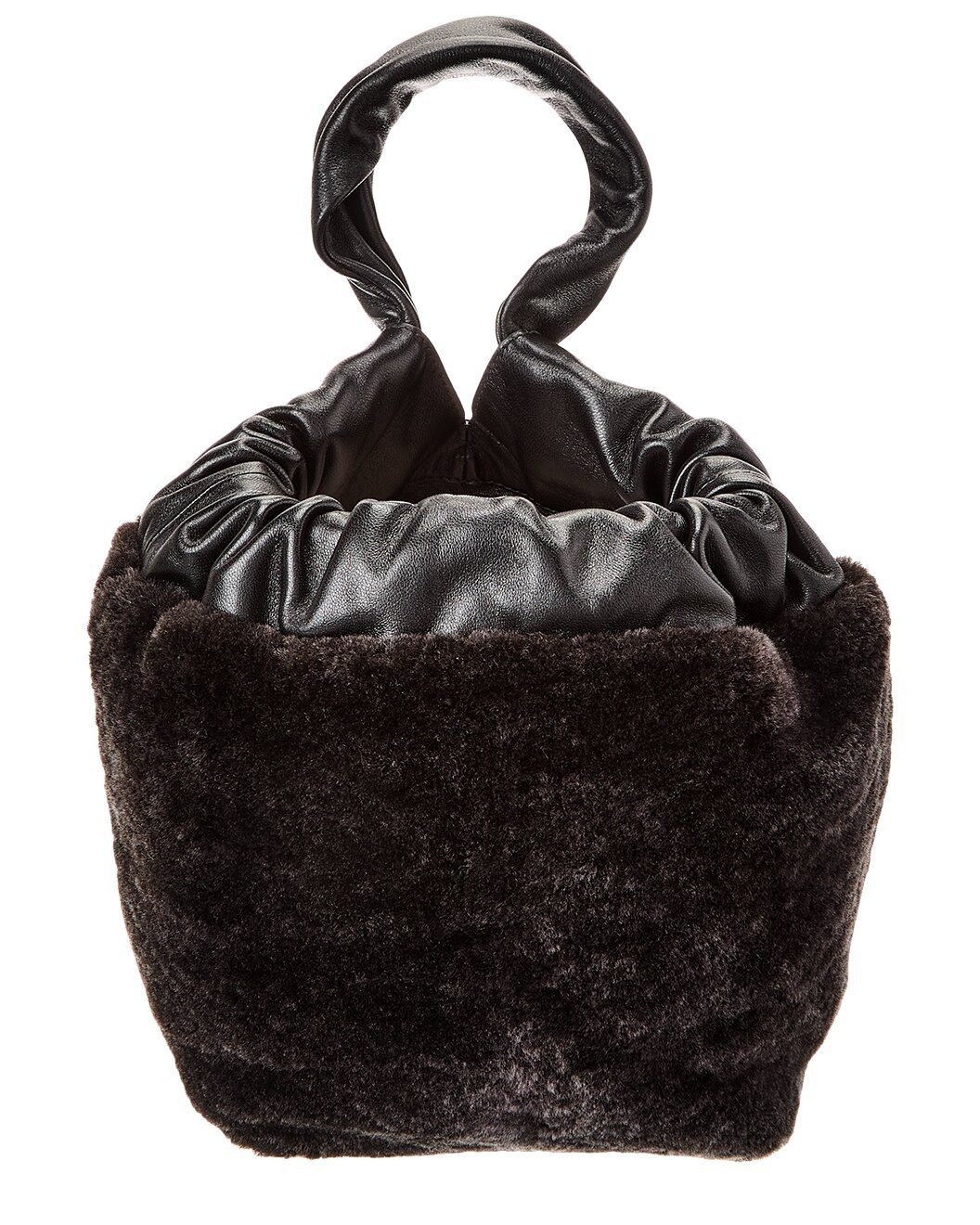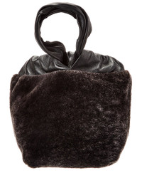 - Made in Italy - Color/material: black leather and faux fur - Interior design details: leather lining, interior pocket - Measures 8in wide x 8in high x 7in deep - Top handle drops 6in - Drawstring closure - Please note: All measurements were taken by hand and are approximate; slight variations may occur. - Our products are 100% genuine. In some cases we purchase merchandise from trusted independent suppliers and not directly from the brand owner. In all cases we stand by the authenticity of every product sold on our site.