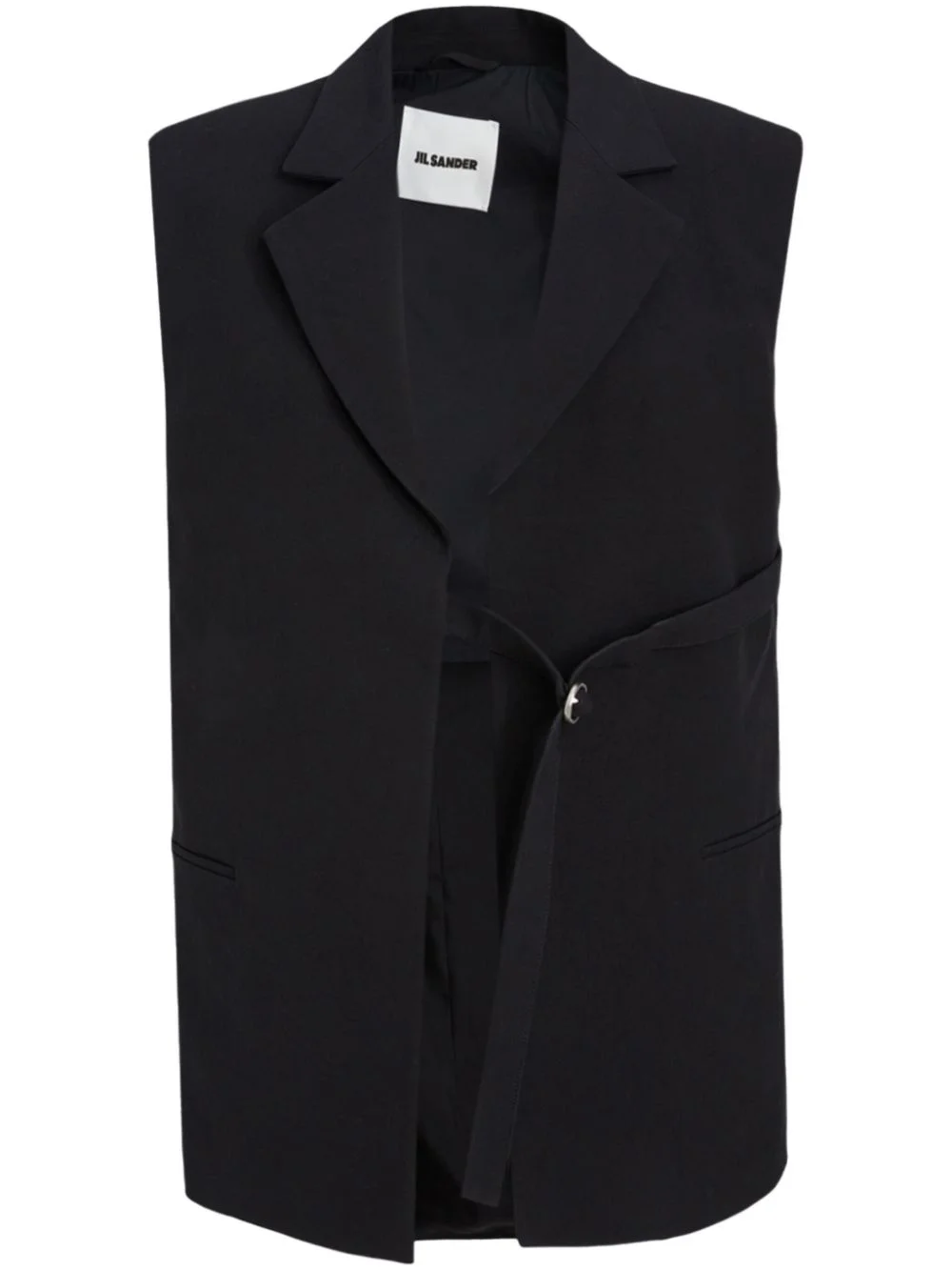 belted vest Highlights - Black - Wrap design - Buckle fastening - Notched lapels - Sleeveless Made in Italy Composition Lining: Viscose 100%, Cotton 100% Outer: Cotton 100% SIZE & FIT Measurement BUST 35.43 in(90 cm) LENGTH 29.52 in(75 cm) WAIST 38.58 in(98 cm) Shoulder Width 16.73 in(42.5 cm) FittingInformation Designed for a relaxed fit, this piece allows for comfort and movement when worn The adjustable tabs allow for fitted preferences Made from a midweight non-stretch fabric
