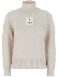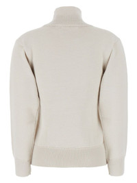wool jumper Highlights - Light beige - Wool - Fine knit - Roll neck - Drop shoulder - Long sleeves - Applique logo - Ribbed cuffs and hem Made in Italy Composition Wool 100% SIZE & FIT FittingInformation Designed for a slim fit that sits just away from the body offering a close yet comfortable fit The ribbed hem offers a close, comfortable fit Made with a heavyweight knit, this piece offers some stretch