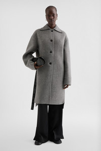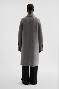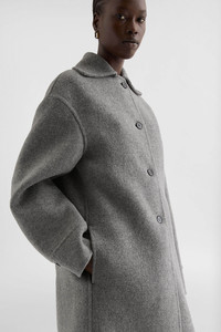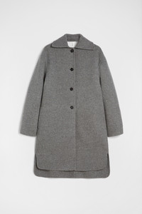 Felted virgin wool coat with wide spread collar detail Details - oversized fit and single-breasted - unlined - visible front button closure - dropped shoulders and spread collar - two-buttoned cuffs - shorter front and curved hems - 100% virgin wool - made in Italy - StyleID: J04AA0002J40020034 Care - dry clean only - iron with care Fit - model is 177cm/5'9" and is wearing a size 34 DE - Please note that the physical label of the item will show the German size