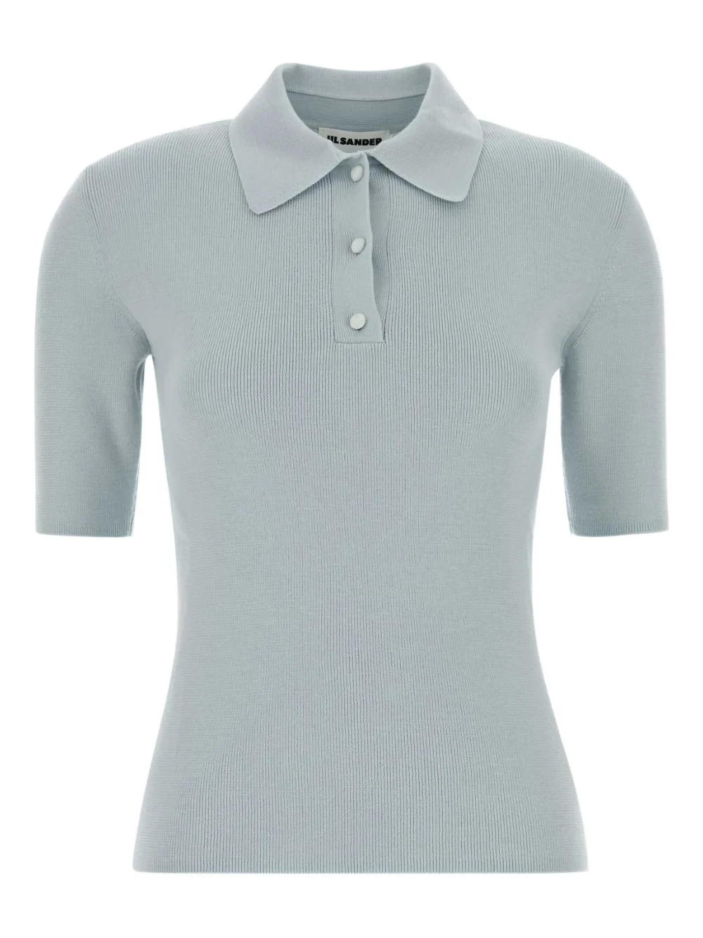 short-sleeve polo shirt Highlights - Light blue - Ribbed knit - Point collar - Button fastening - Short sleeves Made in Italy Composition Wool 100% Washing instructions Read Manufacturer Guidelines