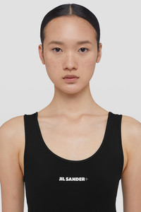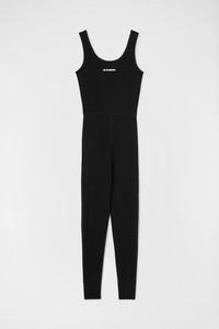 Sleeveless technical jersey jumpsuit with printed Jil Sander+ logo Details - slim fit - long trousers - round neckline - printed Jil Sander+ logo - stretch technical jersey - 59% polyamide-nylon 41% elastane-spandex - made in Italy - StyleID: J40FP0106J20031001 Care - hand wash - iron with care Fit - model is 177cm/5'9" and is wearing a size S - Please note that the physical label of the item will show the international size