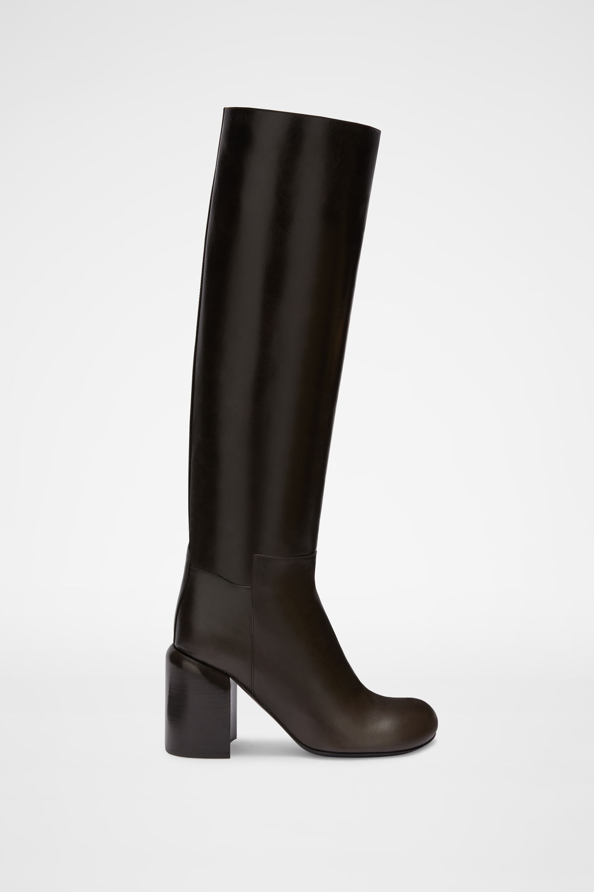 Pull-on leather boots with block heel Details - round toe and knee high - 90mm block heel - leather sole - Jil Sander logo branded insole - upper 100% goat leather, sole 100% calf leather - made in Italy - style ID: JS36144A-14001