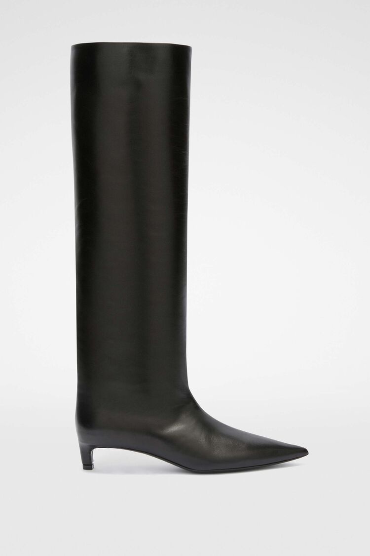 Knee-high leather heeled boots Details - pointed toe and low heel - leather footbed and sole - Jil Sander logo branded insole - 100% ovine leather - made in Italy - StyleID: J15WW0009P2958001