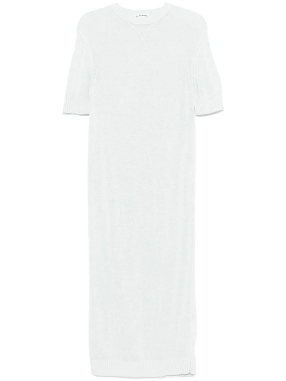 knitted midi dress Highlights - Light blue - Ribbed cuffs and hem - Embroidered logo to the front - Crew neck Made in Italy Composition Cotton 100% SIZE & FIT Model measurements Height 5 ft 9 in(1.75 m) Bust/Chest 34.64 in(88 cm) Hips 36.61 in(93 cm) Waist 26.37 in(67 cm) FittingInformation Designed for a slim fit that sits just away from the body offering a close yet comfortable fit Made with a midweight knit, this piece offers some stretch