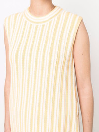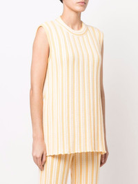 rib-knit sleeveless top Jil Sander diverts from their usual minimalist colour palette to present this sleeveless knit top, presented in a two-tone striped design. Made in Italy Composition Cotton 95%, Polyamide 4%, Spandex/Elastane 1% SIZE & FIT Model measurements Height 5 ft 10 in(1.78 m) Bust/Chest 33.07 in(84 cm) Hips 35.82 in(91 cm) Waist 25.98 in(66 cm) FittingInformation This piece fits true to size. We recommend you get your regular size Cut for a loose fit Made with a mid-weight stretch fabric Washing instructions Dry Clean Only