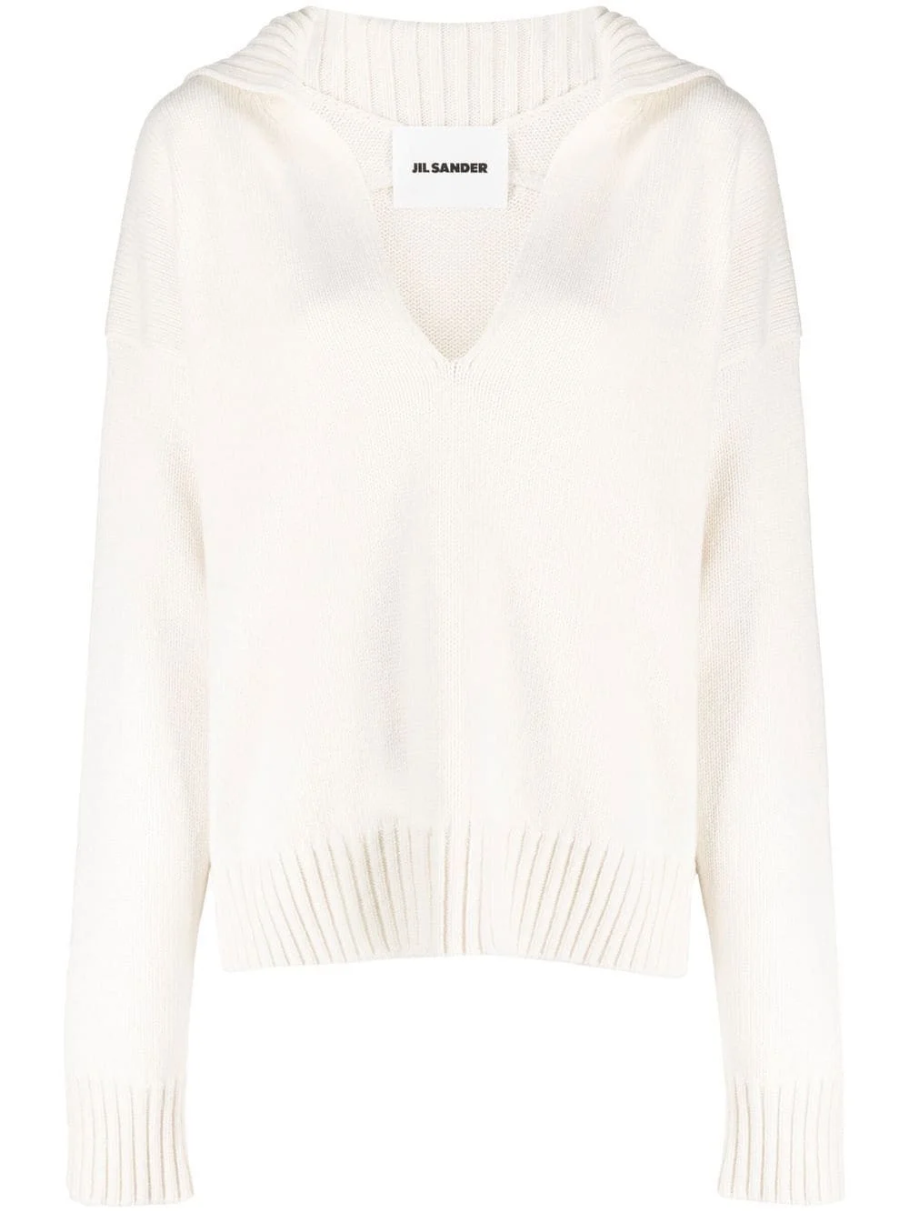 knitted split-neck jumper ecru cotton-cashmere blend knitted construction round split neck spread collar ribbed cuffs ribbed hem long sleeves Made in Italy Composition Cashmere 88%, Cotton 10%, Polyamide 2% SIZE & FIT Model measurements Height 5 ft 10 in(1.78 m) Bust/Chest 31.49 in(80 cm) Hips 35.03 in(89 cm) Waist 23.62 in(60 cm) Washing instructions Dry Clean Only