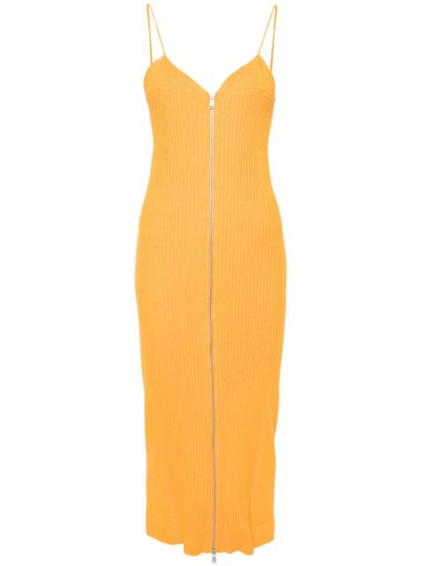 knitted zip-up dress Highlights - Tangerine orange - Cotton - Knitted construction - Panelled design - Spaghetti straps - Sleeveless - Unlined - Straight hem - Front zip fastening Made in Italy Composition Cotton 100% SIZE & FIT Model measurements Height 5 ft 9 in(1.75 m) Bust/Chest 34.64 in(88 cm) Hips 36.61 in(93 cm) Waist 26.37 in(67 cm) FittingInformation Designed for a slim fit that sits just away from the body offering a close yet comfortable fit Made with a midweight knit, this piece offers some stretch This piece fits true to size – take your usual size