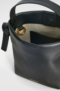Mini leather bag with knotted handle and embossed Jil Sander logo Details - leather top handle with knot detail - detachable and adjustable crossbody strap - magnetic button closure - inner flat leather pocket - canvas lining - embossed Jil Sander logo - 100% calf leather - made in Italy - StyleID: J07ZI0001P6581001