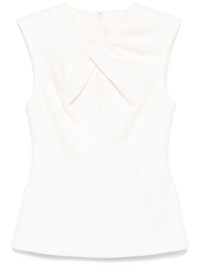crew-neck top Highlights - Cream white - Textured finish - Crew neck - Concealed rear zip fastening - Draped detailing - Sleeveless - Flared - Partial lining - Straight hem Made in Italy Composition Lining: Viscose 100% Outer: Viscose 62%, Polyamide 37%, Spandex/Elastane 1% SIZE & FIT Model measurements Height 5 ft 9 in(1.75 m) Bust/Chest 30.7 in(78 cm) Hips 35.03 in(89 cm) Waist 23.62 in(60 cm) FittingInformation Designed for a slim fit that sits just away from the body offering a close yet comfortable fit Made from a midweight stretch fabric, this piece offers elasticity and flexibility when worn