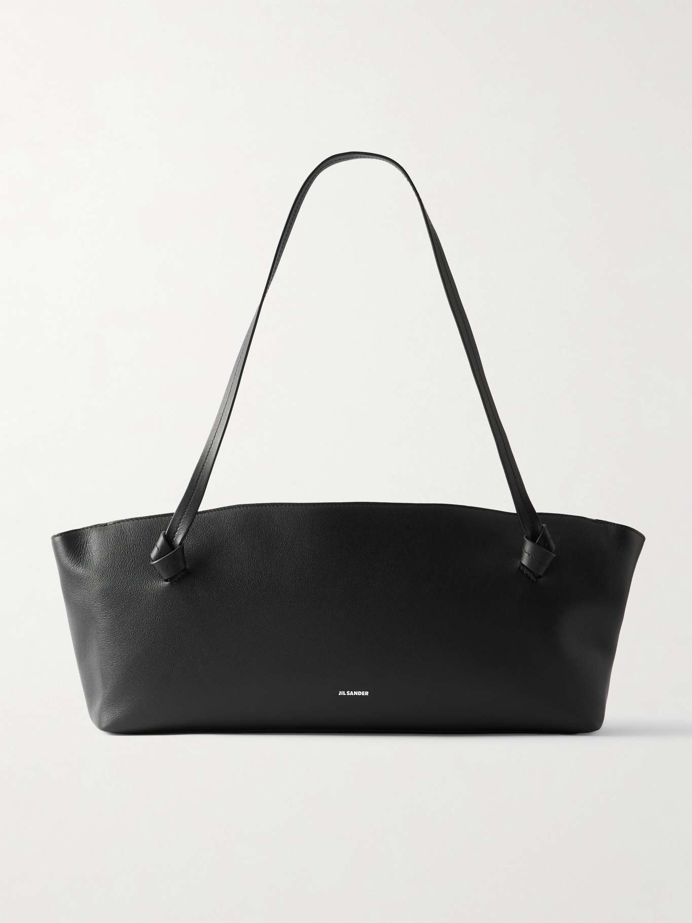 Named for its sculptural top handles, Jil Sander's 'Knot' shoulder bag is designed in a distinct yet understated oblong shape. It's been made in Italy from smooth black leather that's stamped with the logo and has a suede-lined interior with enough space for your phone, wallet and sunglasses. Details & Care - Black leather - Two top handles - Internal slip pocket - Leather lining - Zip fastening