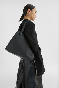 Medium-sized leather tote bag with knotted handles and embossed Jil Sander logo Details - two leather top handles with knot detail - hook closure - leather side straps with Cannolo buckle closure - inner flat leather pocket - canvas lining - embossed Jil Sander logo - 100% calf leather - made in Italy - StyleID: J07WC0034P6581001