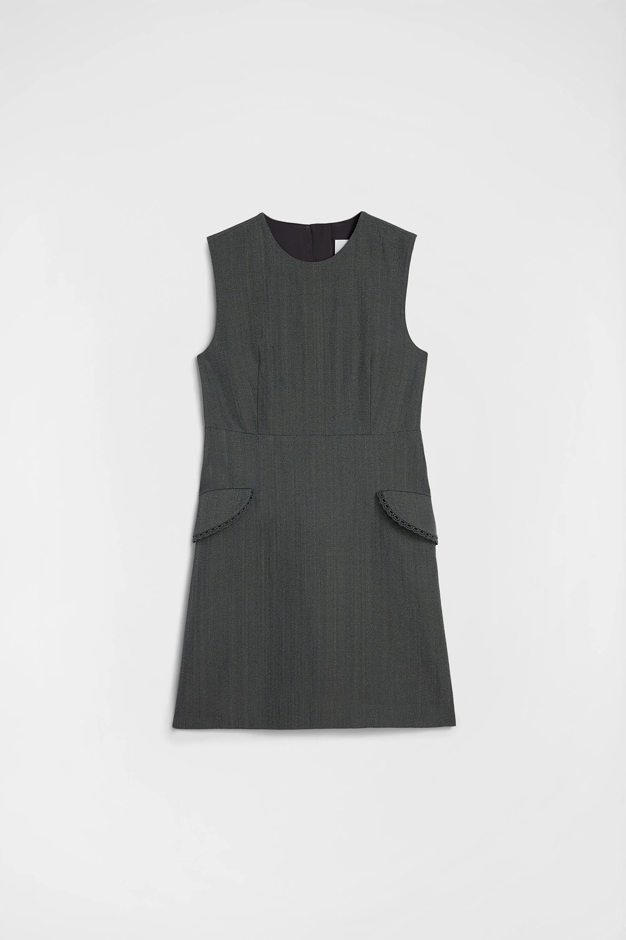 Sleeveless fluid silk and viscose tailored dress with side pockets with lace trim Details - regular fit - round neck - centre-back zip with graphic puller - viscose lining - fluid silk and viscose tailoring - 58% viscose-rayon 42% silk - made in Italy - StyleID: J01CT0266J65005036 Care - dry clean only - iron with care Fit - model is 177cm/5'9" and is wearing a size 34 DE - Please note that the physical label of the item will show the German size