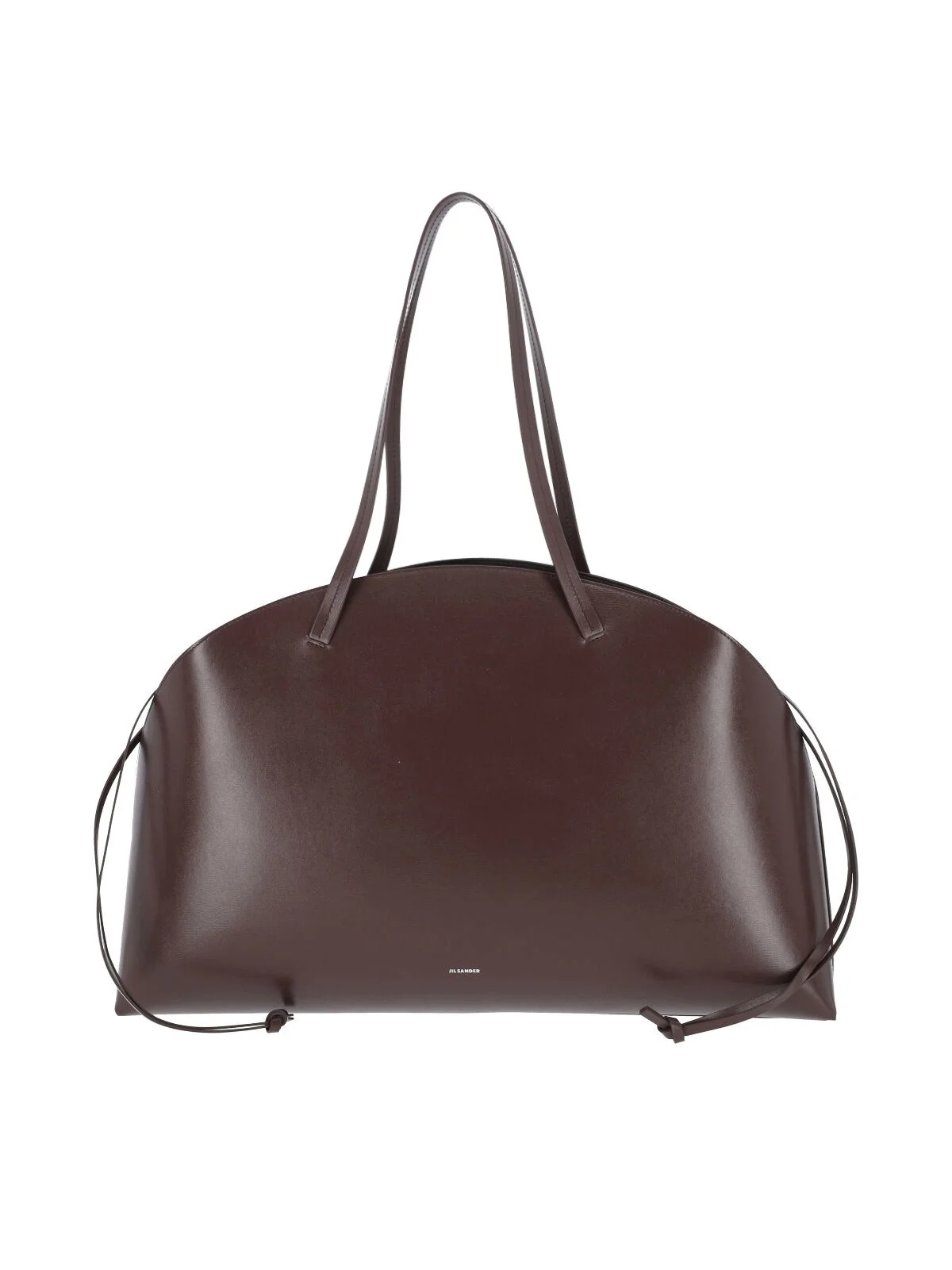 JIL SANDER LOGO LARGE SHOULDER BAG IN BROWN LEATHER WITH TWO HANDLES, SILVER LOGO PRINT ON THE FRONT, REMOVABLE INNER CLUTCH, DRAWSTRING CLOSURE DETAIL, MAIN INNER COMPARTMENT. PRODUCT INFO PRODUCT CODE J07ZH0053 P7101205 COMPOSITION: 100% CALF LEATHER SIZE AND FIT: H 33 X W 52 X D 10 CM MADE IN: ITALY